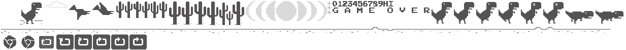 Dino game. A pixelated dinosaur dodges cacti and pterodactyls as it runs across a desolate landscape. When you hear an audio cue, press space to jump over obstacles.